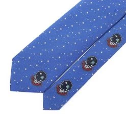 Blue Space Your Face Tie. This is the tie for you! This fresh tie features space your face and double loops in the back so everyone of any shape and size can represent their love for the Dead. The Grateful Dead Blue Space Your Face Tie is made of 100% 16 momme twill silk and traditionally silk-screen printed. No corner was cut and no detail untouched.
