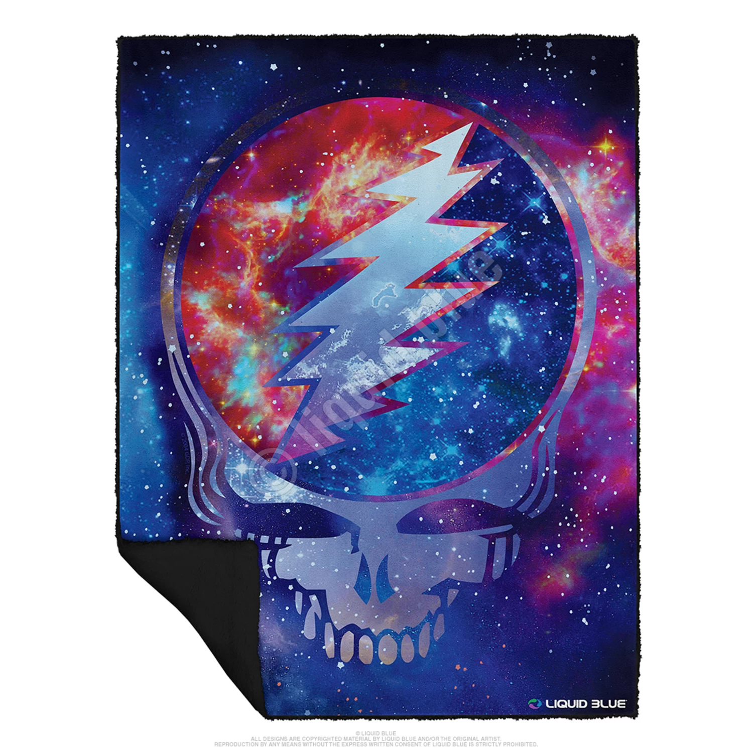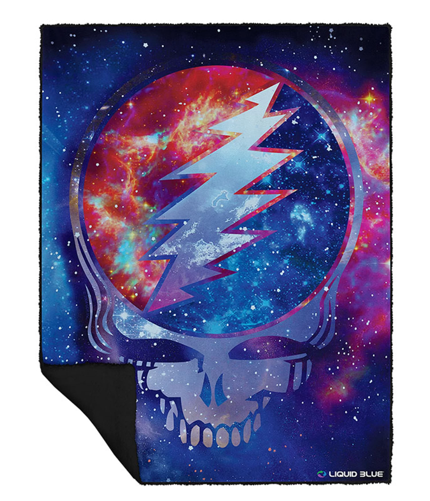 Liquid Blue presents the awesome Cosmic Stealie design on a huge fleece throw blanket. This 50 in. x 60 in. fleece blanket is made of 100% polyester coral fleece and backed by a soft heavyweight Sherpa material. It is digitally printed and is machine washable. Officially Licensed Rock and Roll Merchandise | Gifts & Accessories