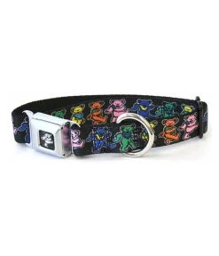 Large Dog Collar is 1 inch wide and fits 15 inch – 26 inch neck. Licensed Grateful Dead Dog Collars are made with a miniature seatbelt buckle which conveniently releases with the push of a button. The incredibly unique graphic work on a nylon strap is sure to catch the attention of everyone around. Product Features: Welded stainless steel D ring for leash attachment.