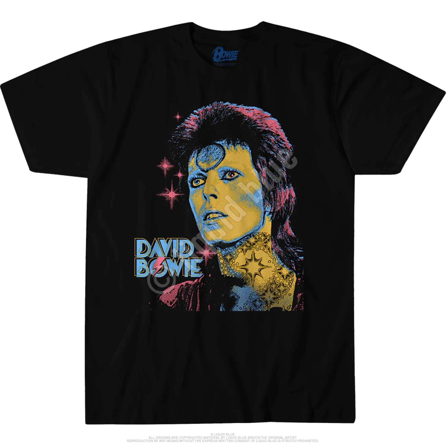 Officially Licensed David Bowie Graphic T-Shirt, Tee, Tie-Dye designed, dyed and printed in the USA by Liquid Blue.