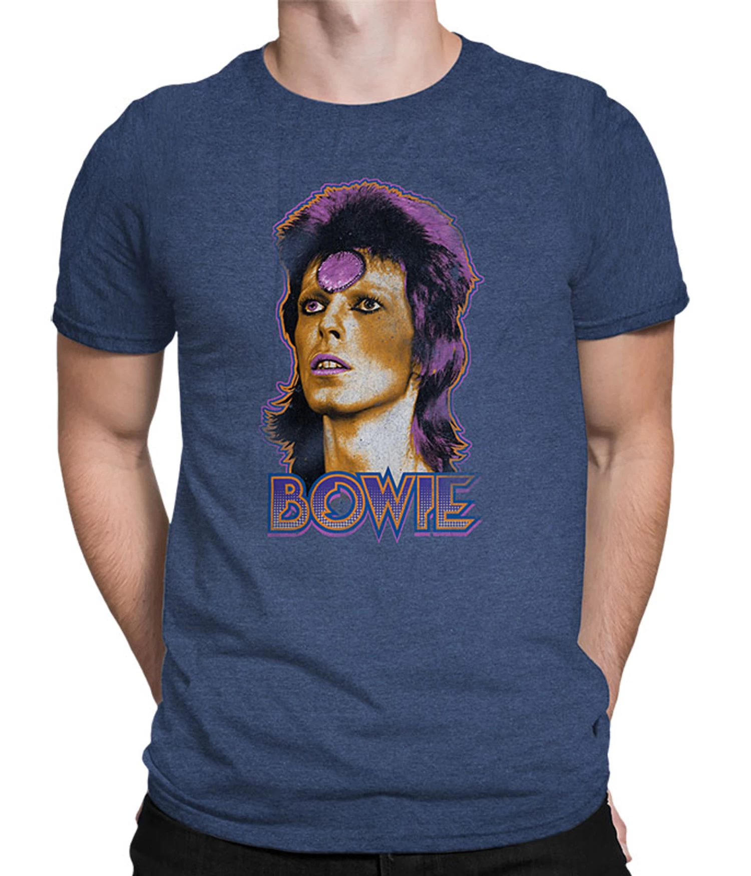 DAVID BOWIE Ziggy Medallion Dark Blue Heather Poly-Cotton T-Shirt