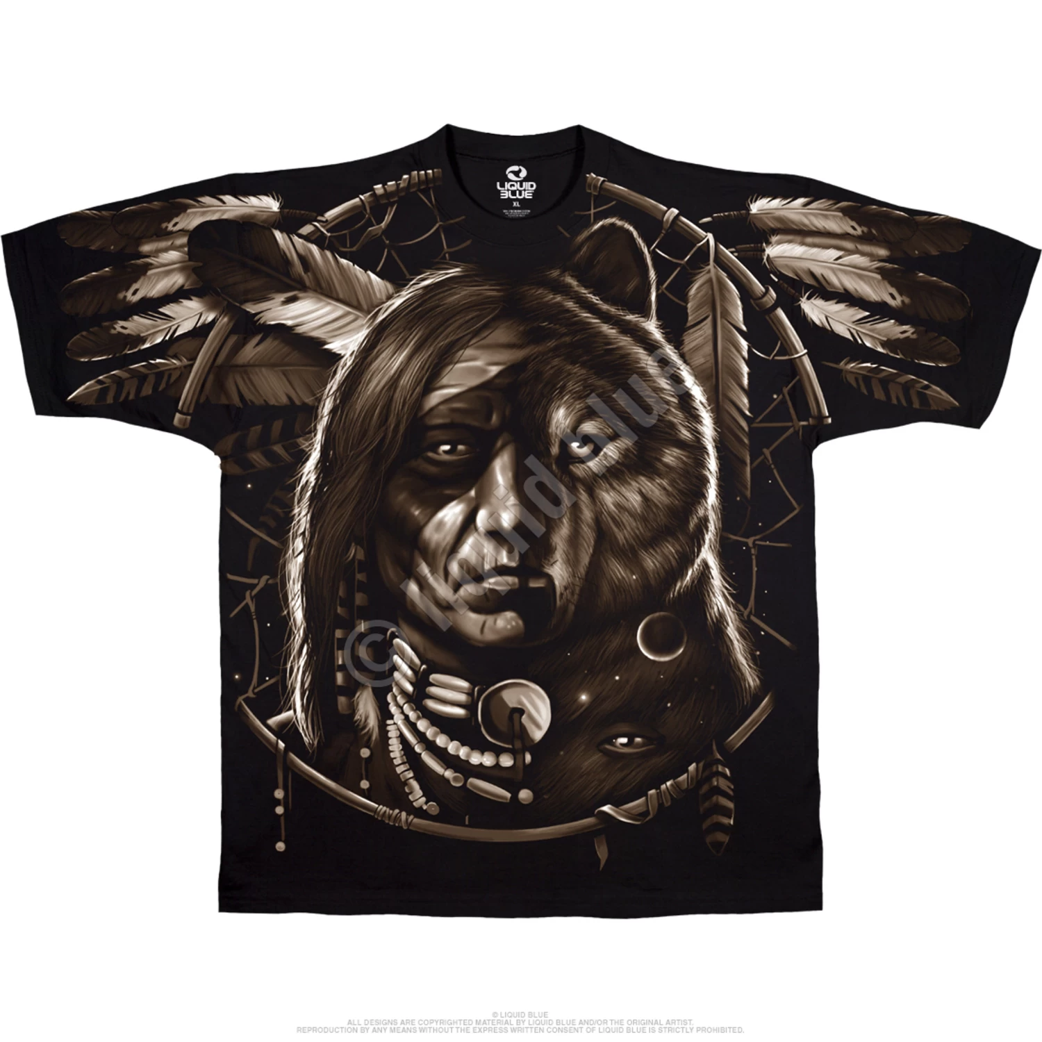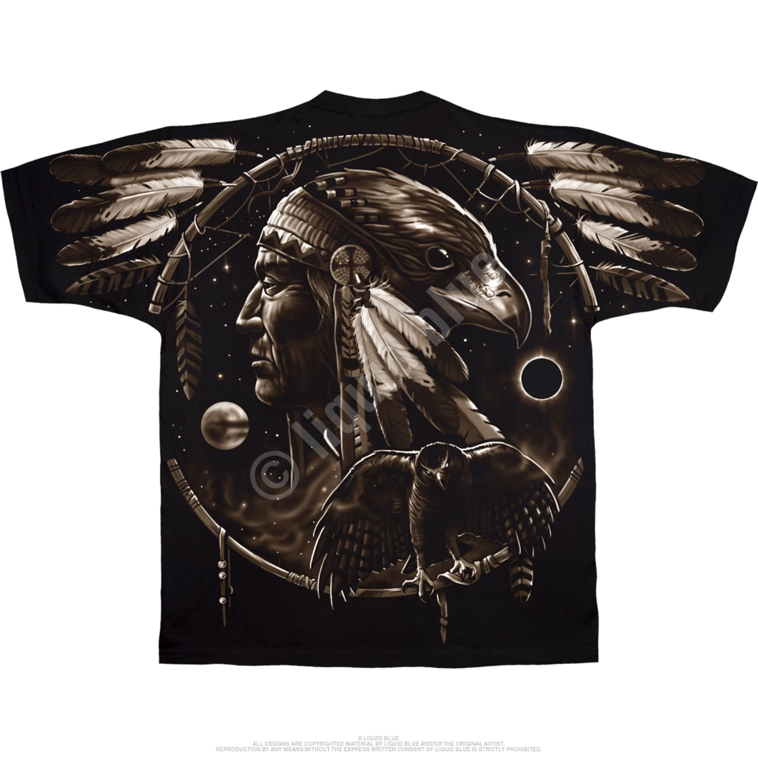 The stunning artwork on this shirt appears on both sides. It’s 100% heavyweight cotton and pre-shrunk. This Nature T-shirt features a Native American theme.