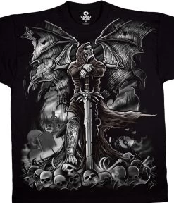 When it’s time, the reaper will let you know. Yet another Liquid Blue skull shirt, a staple in our Fantasy line. This line is known to be dark, provocative, and often breathtaking. It typically highlights skulls, dragons, fire, and death. Of course this shirt is 100% heavyweight cotton, pre-washed and pre-shrunk.