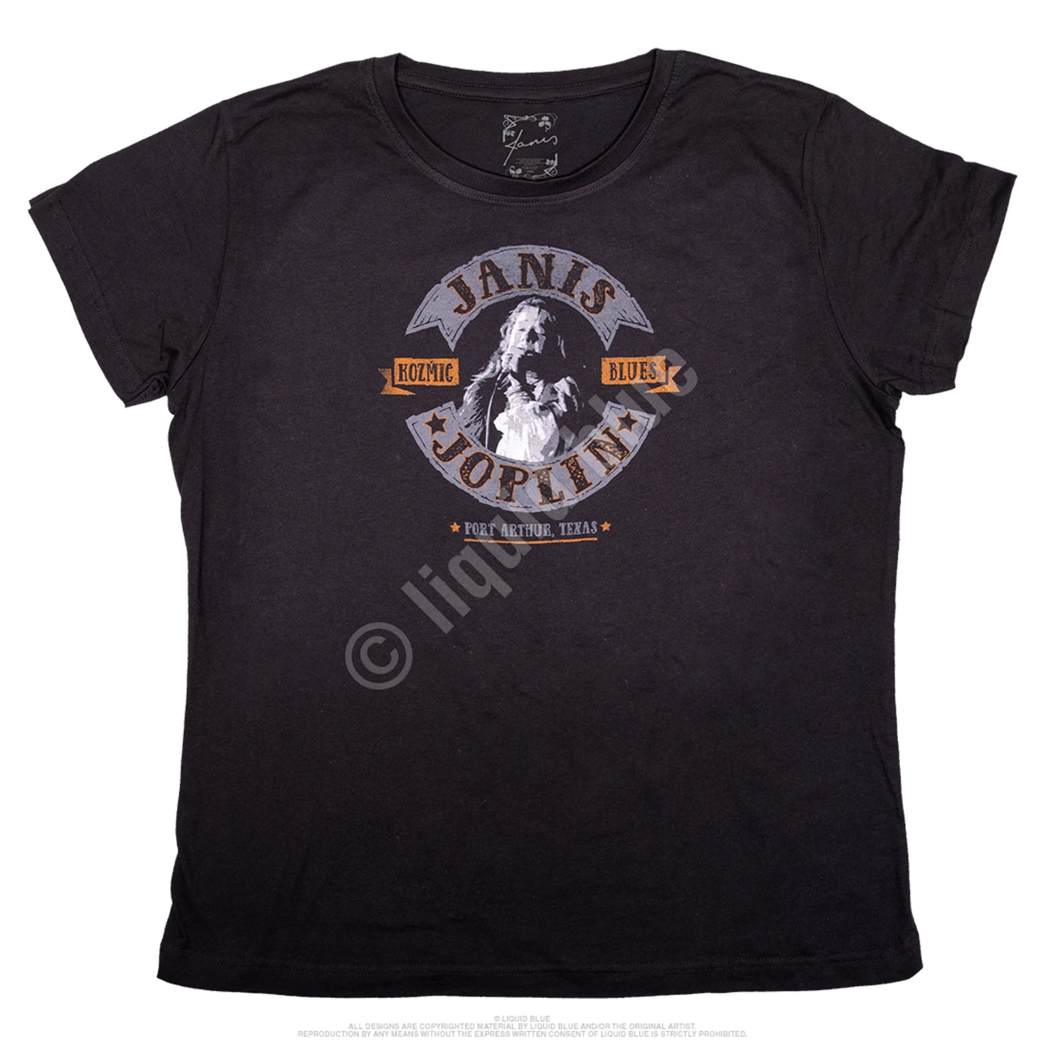 Officially Licensed Janis Joplin Graphic T-Shirt, Tee, designed, dyed and printed in the USA by Liquid Blue.