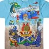 This blue, pink and orange skull T-shirt features a stunning all-over printed 1 sided artwork. Rapper Juicy J The North Memphis Hustler is proudly clad in Skull Pile as seen on Three 6 Mafia’s “Stay Fly” music video from their 2005 release “The Known Unknowns”. Light up at your next house party or club, and don’t forget it’s perfect for Halloween. Recently worn on stage by Travis Scott.