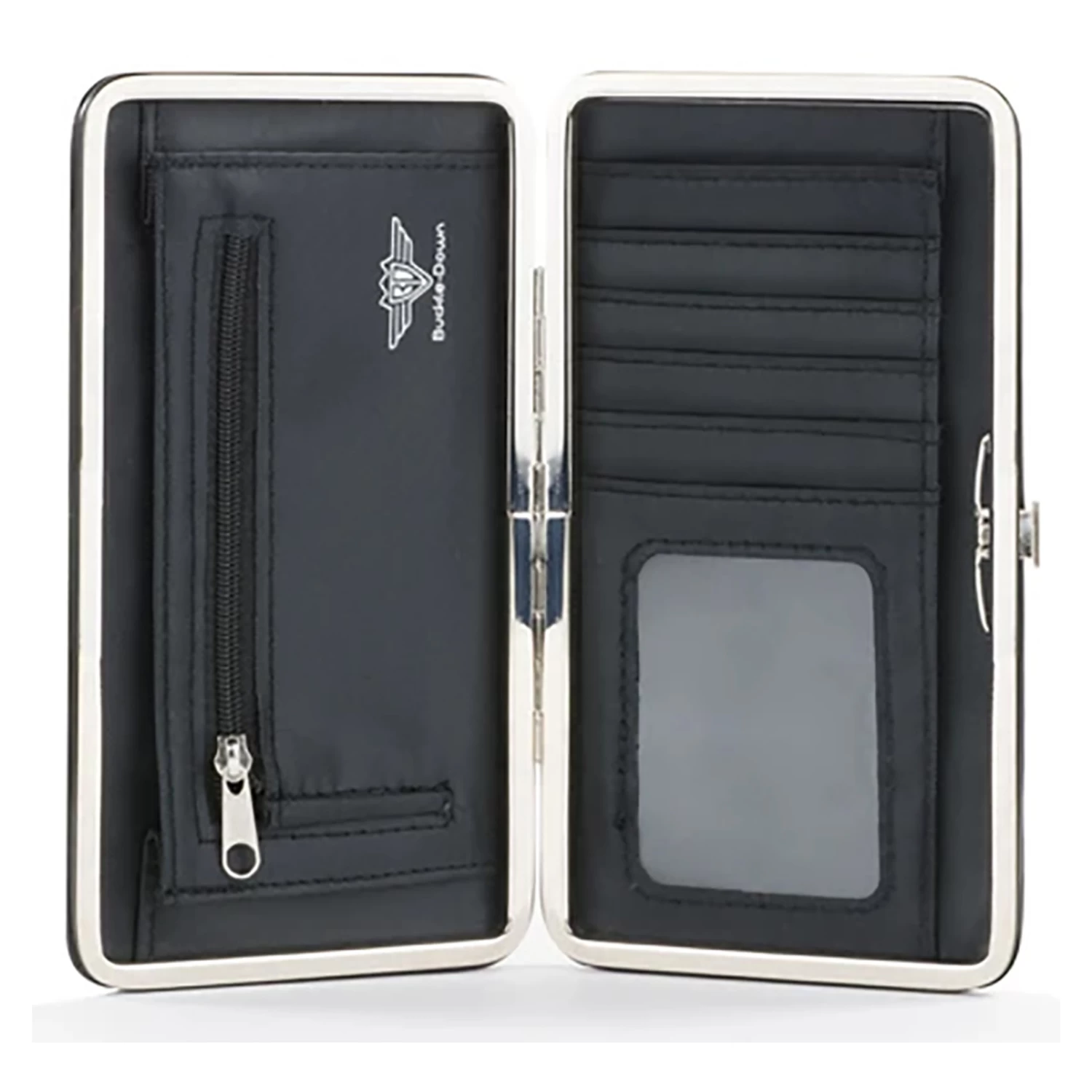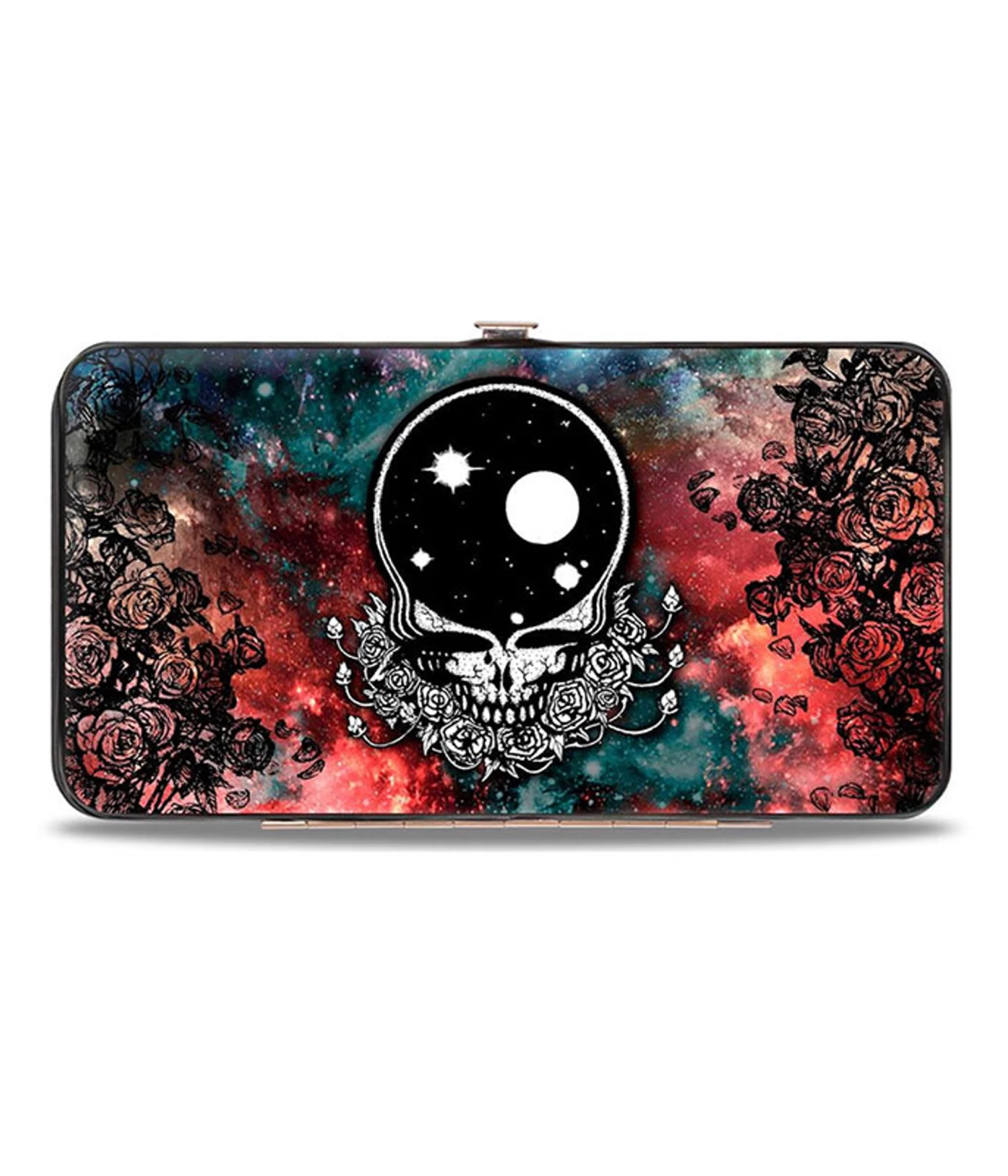 Officially Licensed Rock and Roll Merchandise | Gifts & Accessories. Ladies, you’re going to love this wallet! Stylish and sleek, this hinged wallet is made from vegan leather and stainless steel. It measures 7.0×4.0x0.75 Inches, with 2 billfolds, 4 card slots, and a windowed ID holder. The gorgeous artwork is applied using the latest printing technology, so it will hold up well over time. This product is Made in USA by Buckle-Down, Inc. and Officially Licensed by Grateful Dead.