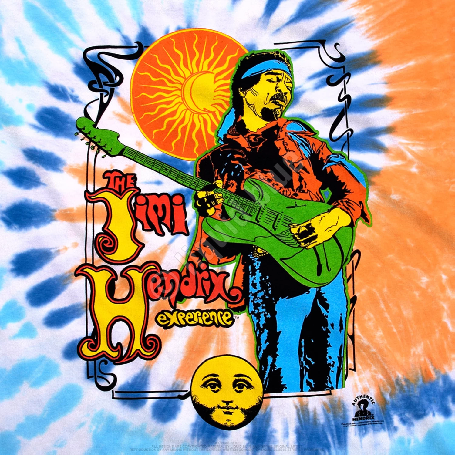 Officially Licensed Jimi Hendrix Graphic T-Shirt, Tee, Tie-Dye designed, dyed and printed in the USA by Liquid Blue.